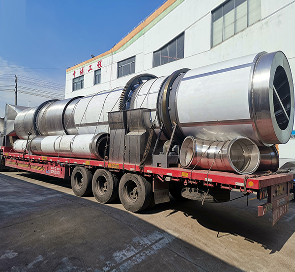 回轉窯滾筒干燥機是一種內加熱傳導型轉動連續干燥設備。旋轉的滾筒通過其下部料槽,粘附著一厚度的料膜,熱量通過管道輸送至滾筒內壁,傳導到滾筒外壁,再傳導給料膜,使料膜中的濕得到蒸發、脫濕、使含濕分的物料得到干燥。